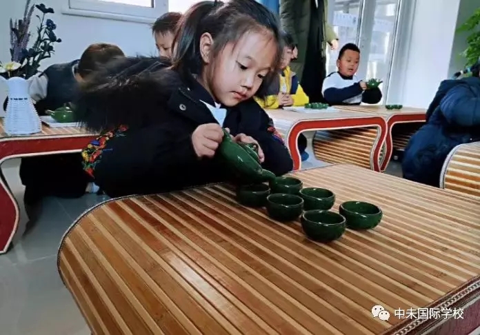 禅茶一味,宁静致远,习学茶艺,立身修为。茶艺课为中未国际学校爱·未来校本课程之一学生们学的非常认真。