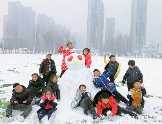 本周下了一场大雪,孩子们兴奋地在雪地里堆雪人、打雪仗。