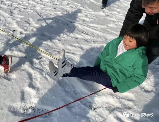 “叮叮当,叮叮当,铃儿响叮当,今天滑雪多快乐,我们坐在冰车上...... ”